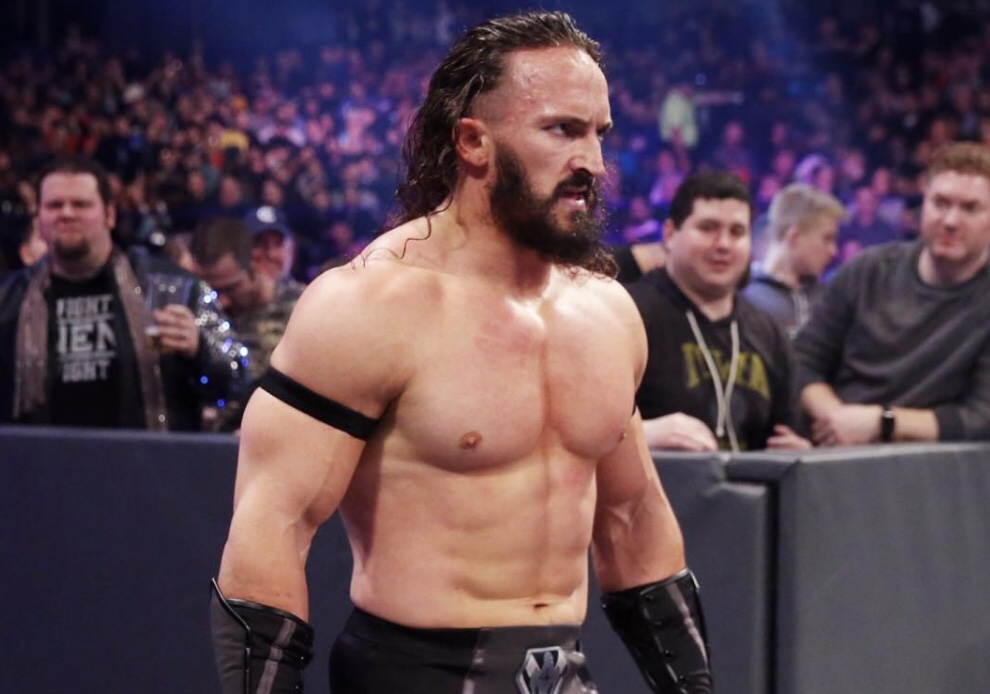 Pac climbed up to the top turnbuckle and crashed down onto Darby’s spine with the scintillating Black Arrow.