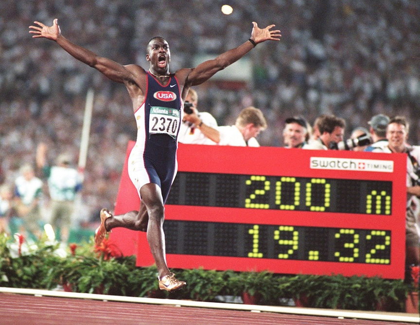 At the Olympics Games in Atlanta 1996 he destroyed the notion of what we deemed humanly possible, with a performance that shattered the world record for 200m. Running a mind blowing 19.32 seconds for Olympic Gold, in one of the most iconic sporting moments of the 20th century.